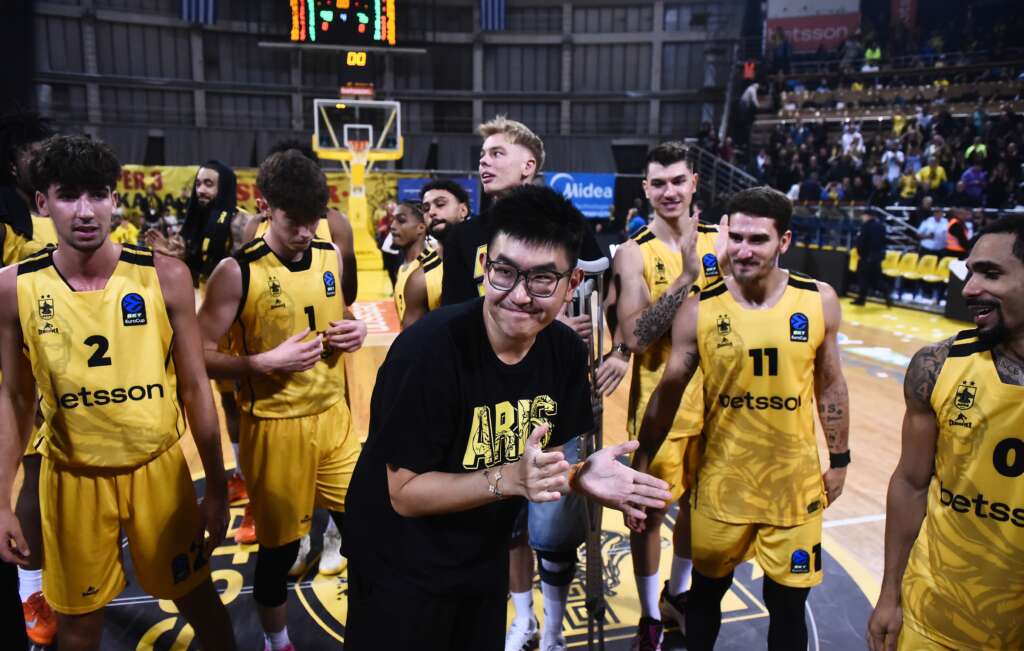 Ο Άρης επικράτησε εμφατικά επί του Αμβούργου, εντός έδρας με 98-76, με τον Ρίτσαρντ Σιάο να πανηγυρίζει με τους παίκτες στο παρκέ, μετά το φινάλε της αναμέτρησης.