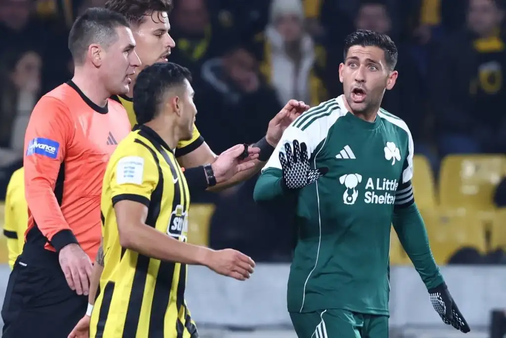Κατά τη διάρκεια του πρώτου ημιχρόνου στο ντέρμπι ΑΕΚ – Παναθηναϊκού, ο Τάσος Μπακασέτας και ο Ορμπελίν Πινέδα ήρθαν σε μικρή αντιπαράθεση έπειτα από μια διεκδίκηση της μπάλας.