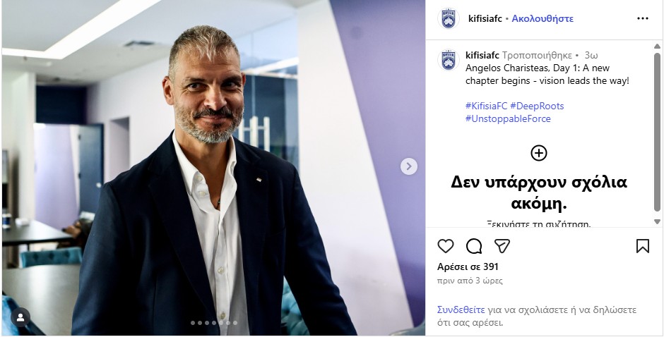 Ο Άγγελος Χαριστέας αποτελεί με κάθε επισημότητα τον νέο τεχνικό διευθυντή της Κηφισιάς, όπως ανακοίνωσε ο πρόεδρος της ομάδας Χρήστο Πρίτσα, με τον πρωταθλητή Ευρώπης να αντικαθιστά τον Στέφανο Κοτσόλη, που συνεχίζει στον Παναθηναϊκό.