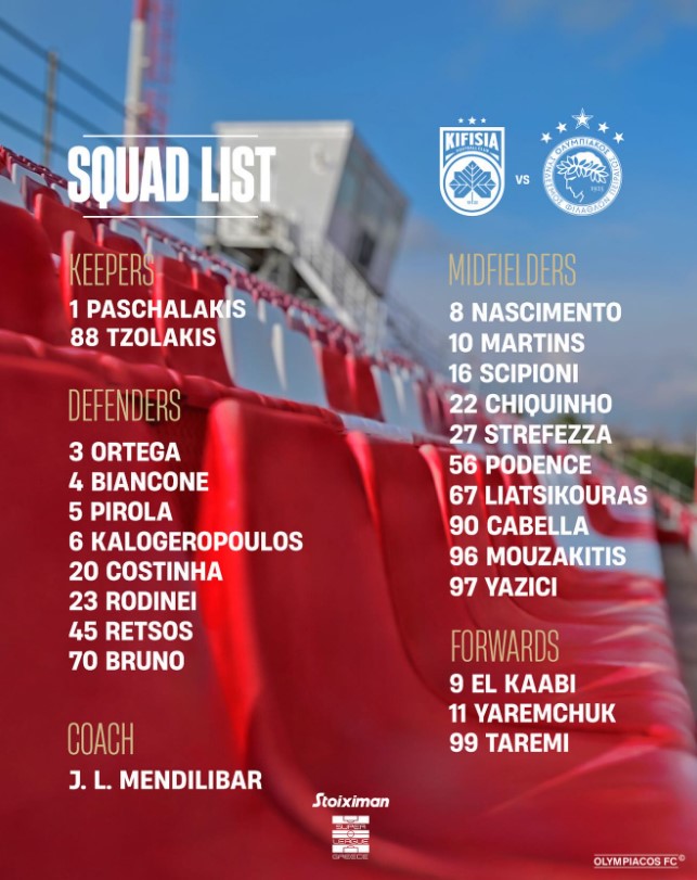 Αναλυτικά η αποστολή του Ολυμπιακού: