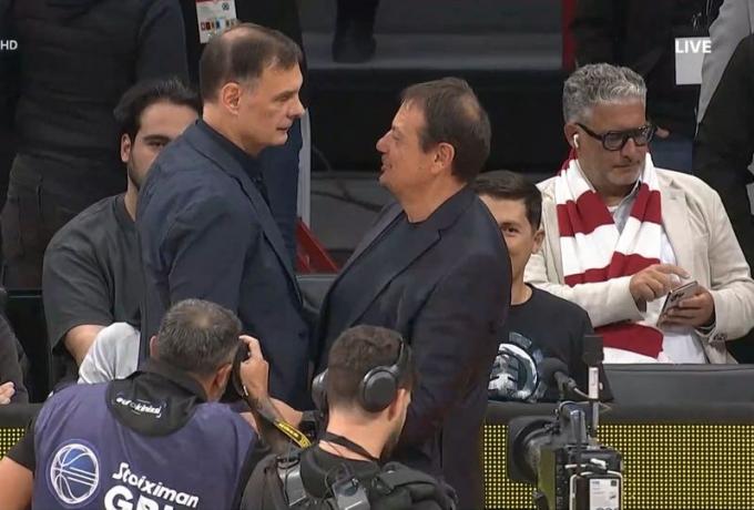 Γιώργος Μπαρτζώκας και Εργκίν Αταμάν αντάλλαξαν θερμή χειραψία λίγο πριν το τζάμπολ του ντέρμπι στο ΣΕΦ.