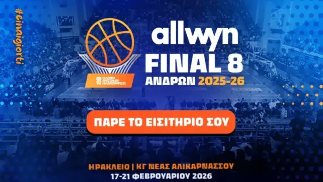 Ξεκίνησε η ηλεκτρονική διάθεση των εισιτηρίων για το Final 8 του Κυπέλλου Ελλάδας (17–21/2) – Όλες οι πληροφορίες για αγορά, ταυτοποίηση και πρόγραμμα αγώνων.