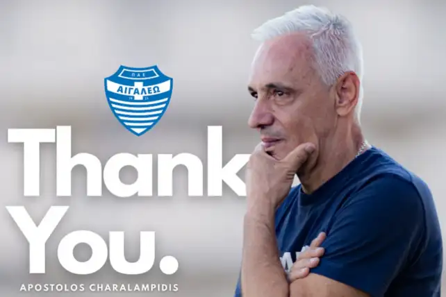 Ο Απόστολος Χαραλαμπίδης δεν θα είναι πλέον προπονητής της ομάδας του Αιγάλεω, καθώς έγινε δεκτό το αίτημα παραίτησής του μετά τα άσχημα αποτελέσματα του συλλόγου σε Κύπελλο και Super League 2.