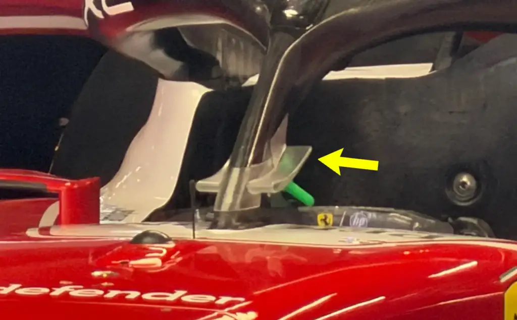 Επειδή οι κανονισμοί δεν επιτρέπουν σημαντικές αναβαθμίσεις κινητήρα μέσα στη σεζόν, τομέα στον οποίο η Ferrari υστερεί έναντι της Mercedes, οι μηχανικοί στο Maranello επικεντρώνονται στη βελτίωση της απόδοσης στην αεροδυναμική. Το μικρό πτερύγιο που έκανε την εμφάνισή του στο Halo είναι μια εντελώς νέα προσέγγιση. Στο παρελθόν ομάδες είχαν επεξεργαστεί αεροδυναμικά τα επάνω τμήματα του Halo, αλλά όχι το κεντρικό του στήριγμα.