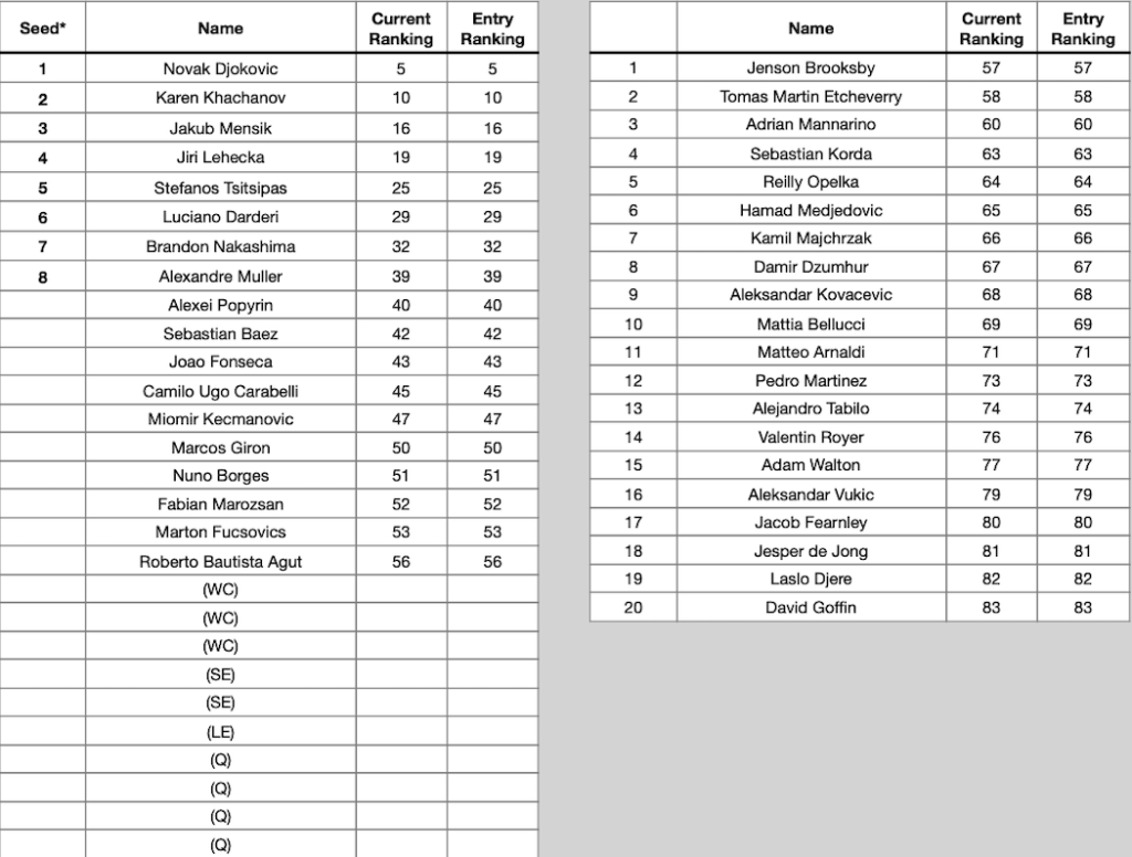 Μαζί με τους κορυφαίους αυτούς τενίστες θα βρίσκονται και οι Κάρεν Κατσάνοφ (Νο.10), Γιακούμπ Μένσικ (Νο.16), Γίρι Λεχέτσκα (Νο.19), ενώ πολύ πιθανή είναι και η παρουσία του Ζοάο Φονσέκα μετά το Davis Cup που είχε γίνει πάλι στη χώρα μας.