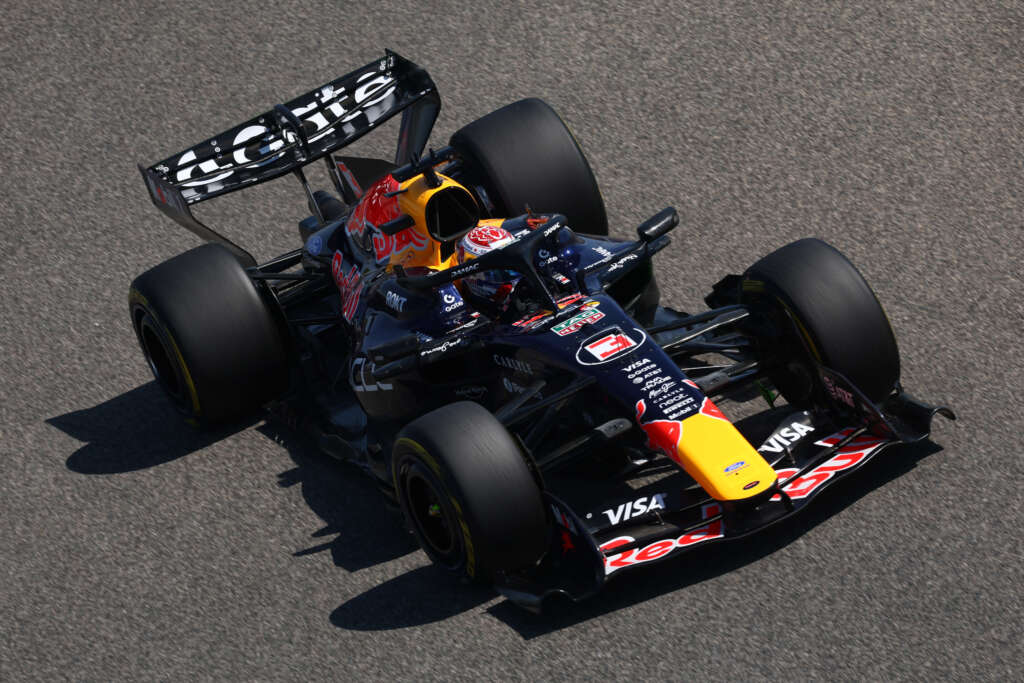 BAHRAIN, BAHRAIN – FEBRUARY 19: Max Verstappen of the Netherlands driving the (3) Oracle Red Bull Racing RB22 Red Bull Ford on track during day two of F1 Testing at Bahrain International Circuit on February 19, 2026 in Bahrain, Bahrain. (Photo by Mark Thompson/Getty Images) // Getty Images / Red Bull Content Pool // SI202602190528 // Usage for editorial use only //